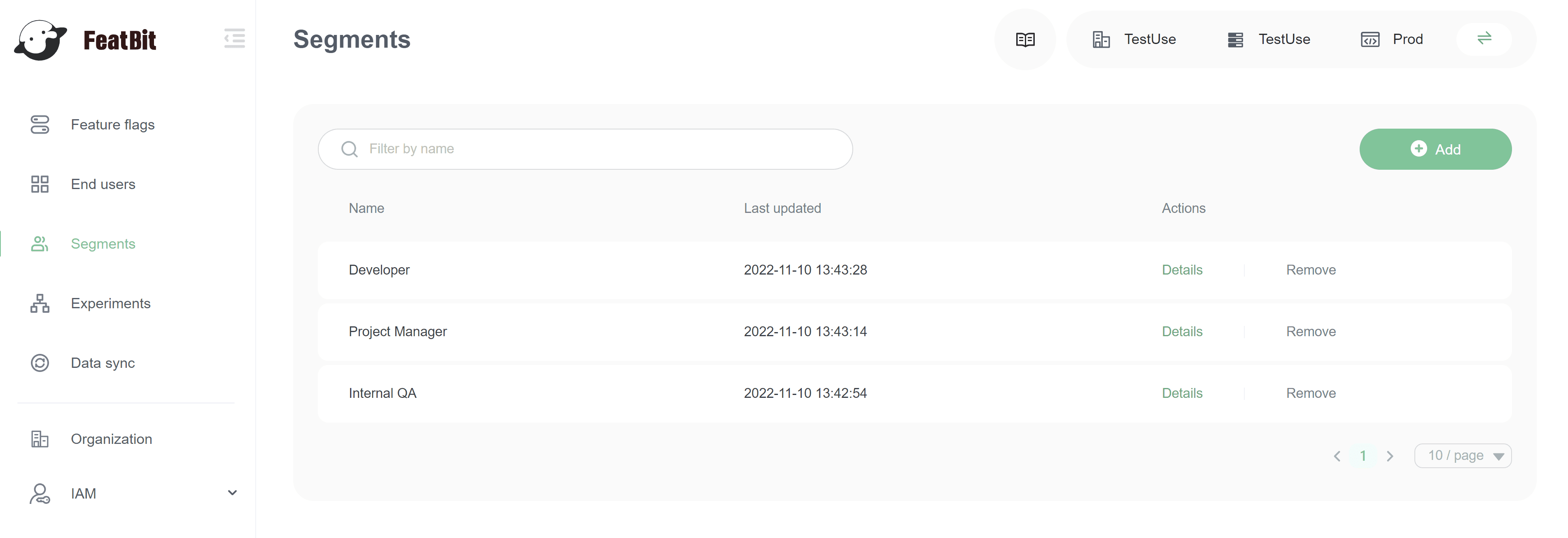 To delete a segment, find the segment you want to delete on the Segments list and click Remove.