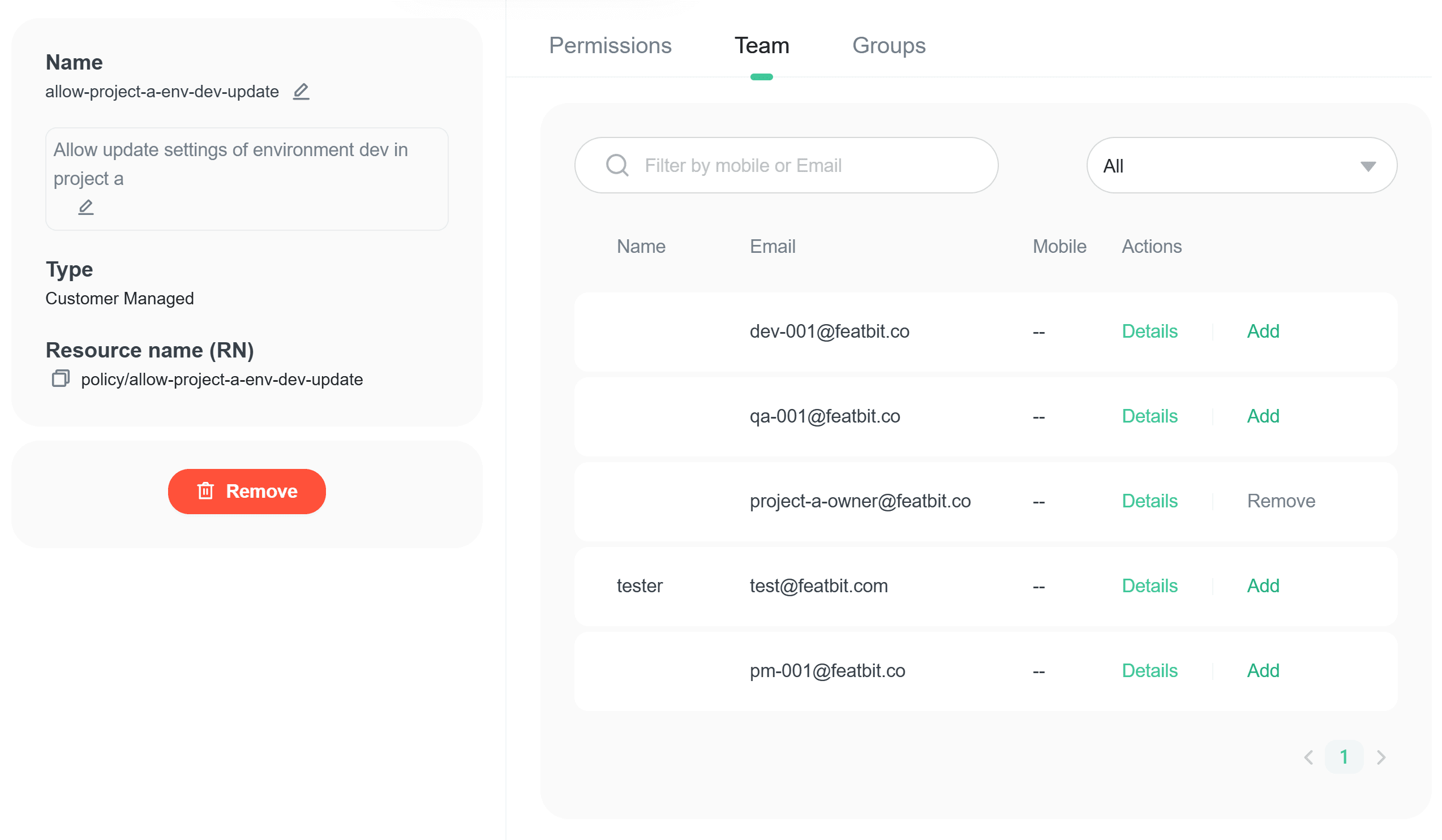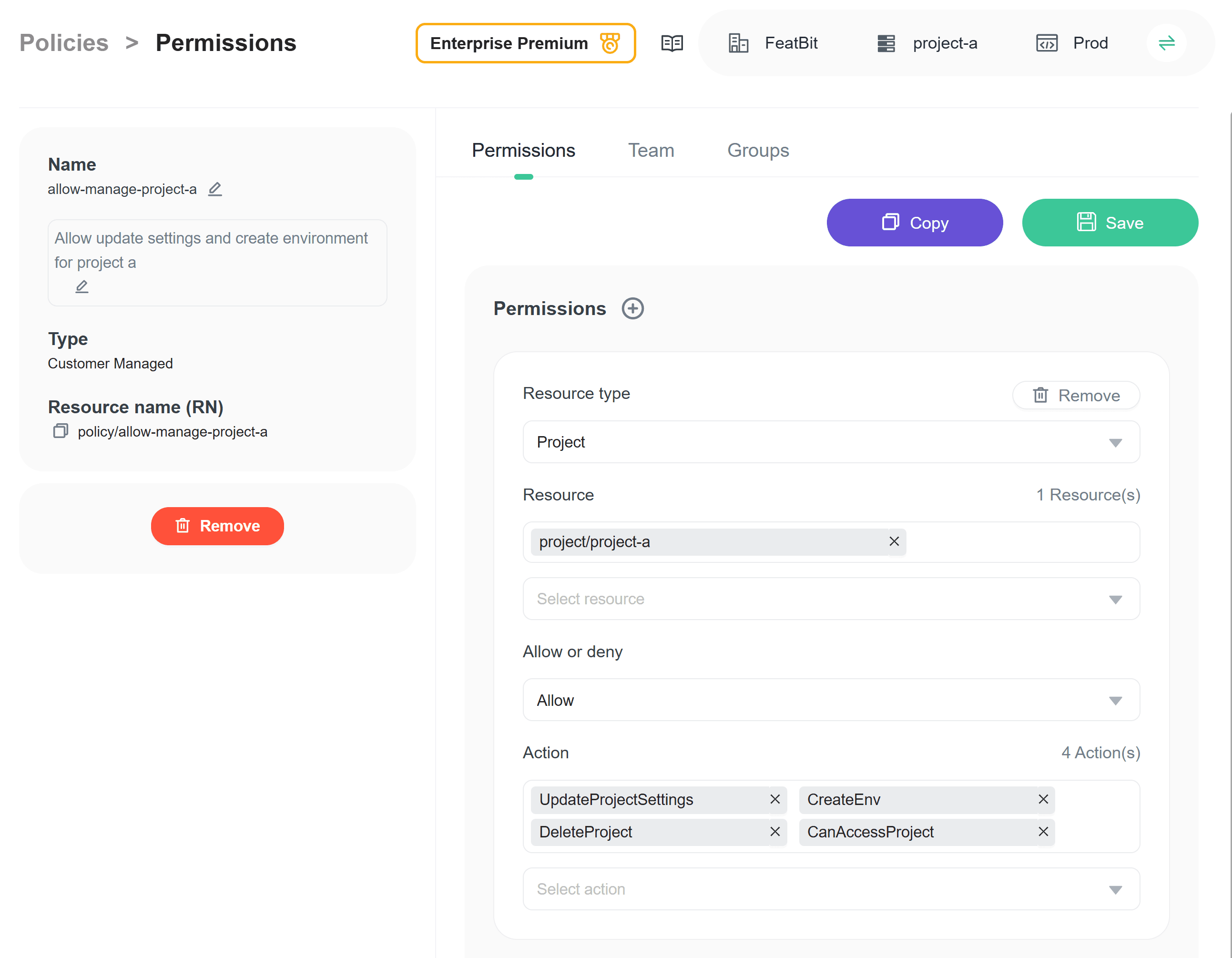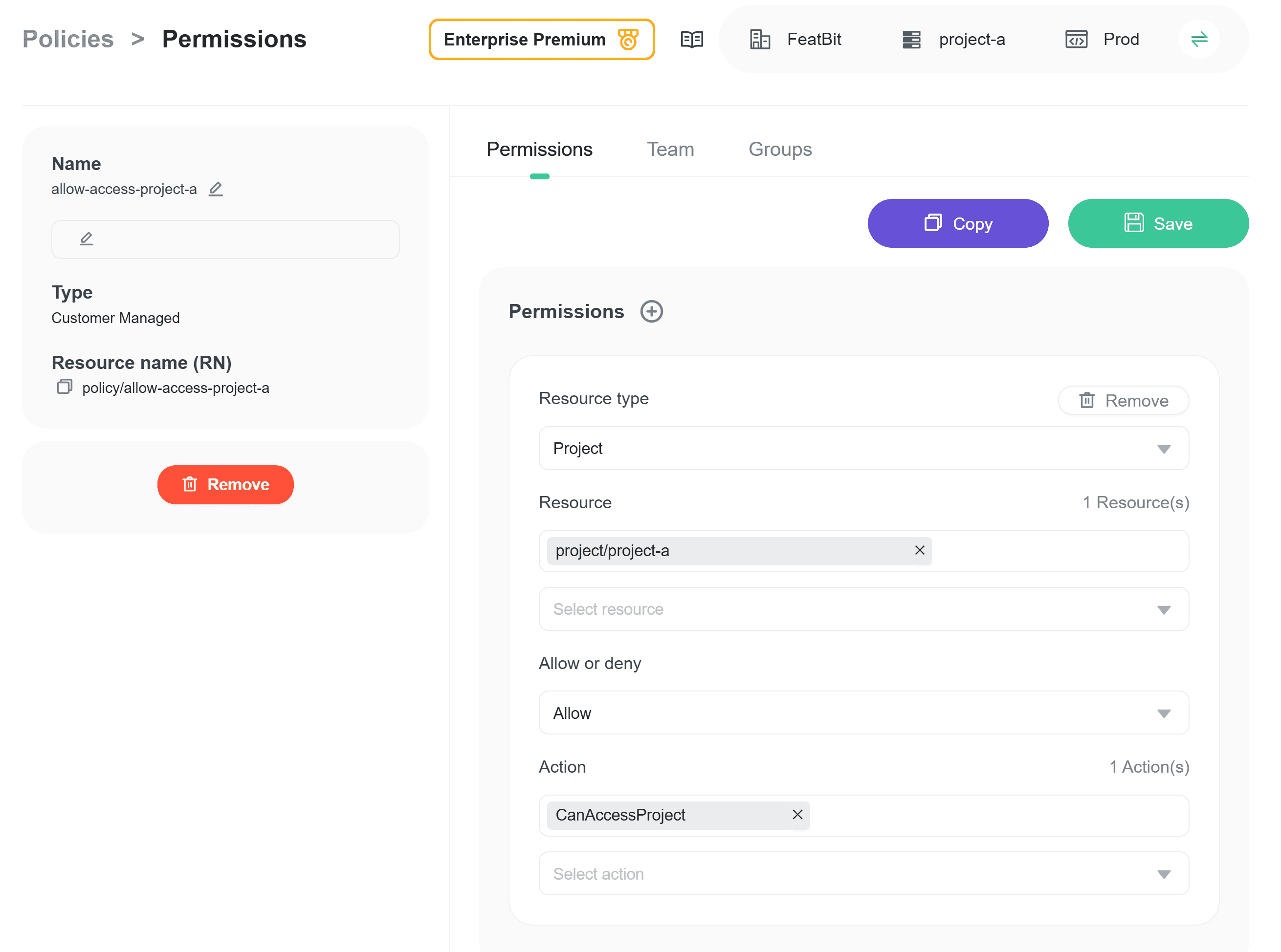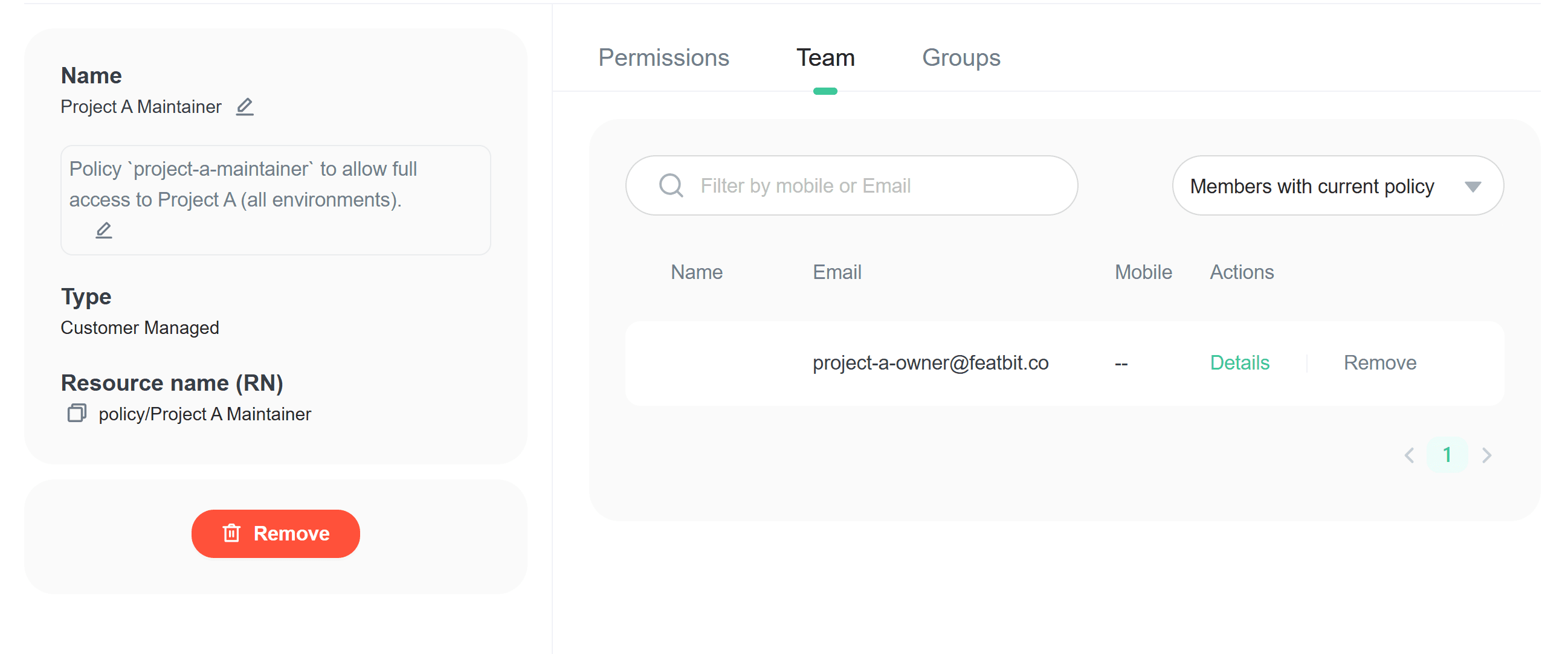 1. Save the policy and assign it to member project-a-owner@featbit.co