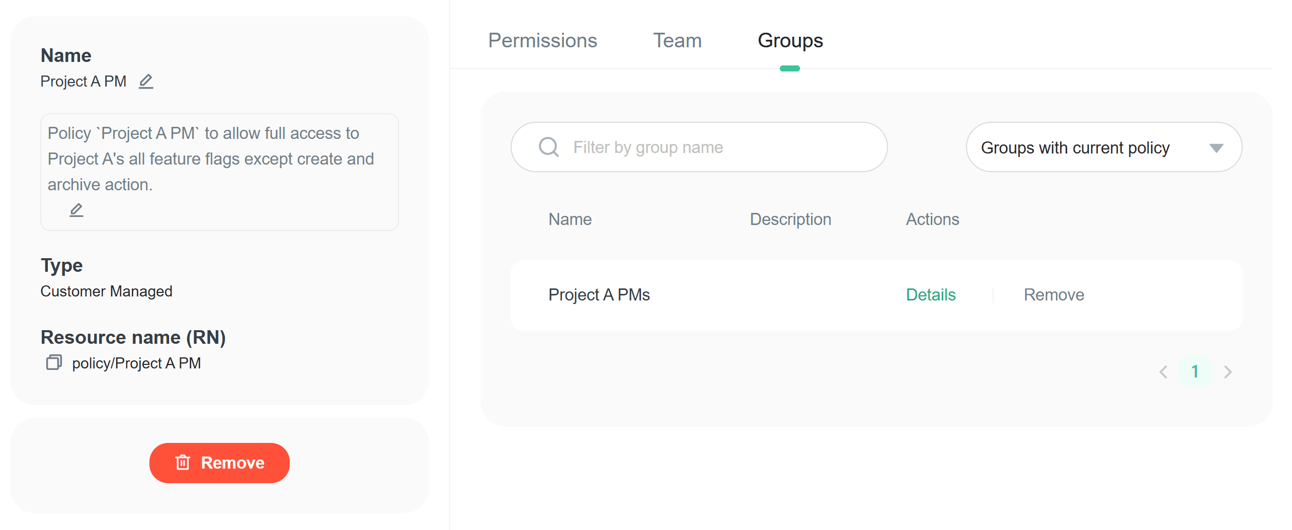 • PMs in the group PM Team A can do everything for feature flags in Project A, except delete feature flags.
