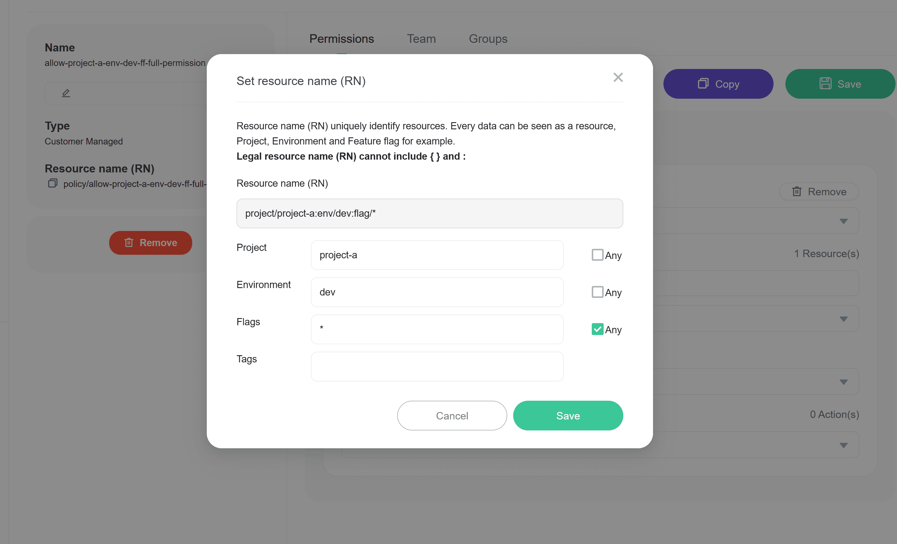 • Resource Selector/Editor: project/project-a:env/prod:flag/*